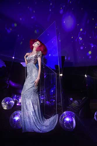 Quattro abiti virtuali in paesaggi di questo mondo utopico hanno creato un'esperienza web immersiva, facendo riferimento alla leggenda arturiana, alla mitologia romana e all'iconografia spirituale. Questo preludio digitale unico ha introdotto un ponte e un percorso visivo verso il regno fisico della collezione e la rivelazione finale catturata dalla leggendaria artista e fotografa Ellen von Unwerth.