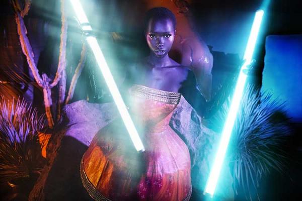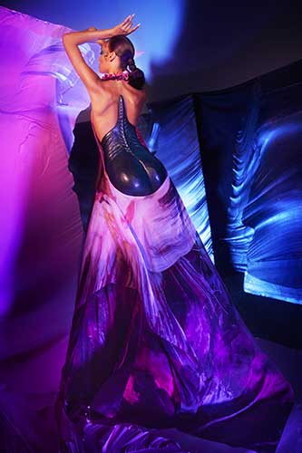 I paesaggi onirici utopici di Getty prendono vita con quindici squisiti capi couture, compresi quelli precedentemente esistenti solo in forma digitale. La collezione è composta da intricati abiti ricamati a mano e abiti sartoriali in tessuti esclusivi dai colori audaci, sete italiane dipinte a mano, velluto francese, morbida pelle di agnello e pelle modellata.