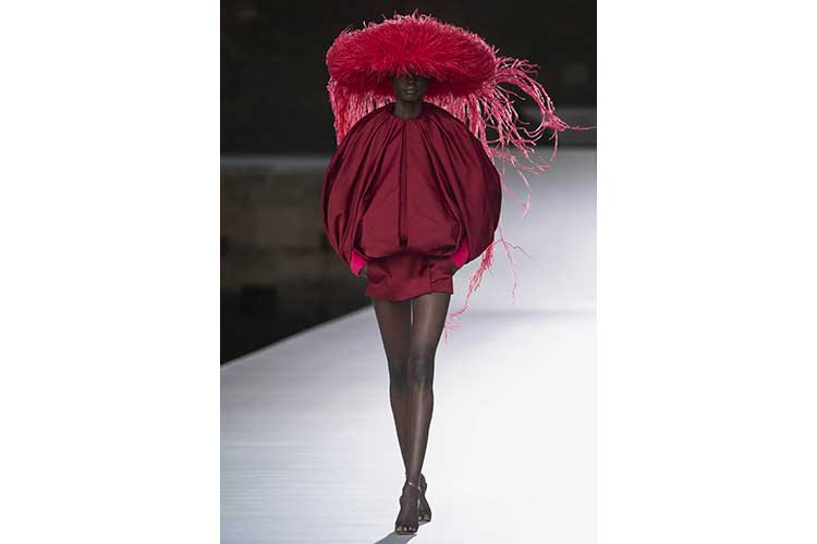 Questo processo sperimentale e metamorfico ritma e spazia una collezione che ricapitola i codici della Couture Valentino, dai cappelli fluttuanti ai ballgown grandiosi, caricandoli di vibranti segni cromatici, fluidificandoli nella noncurante casualità di drappeggi e movimenti.